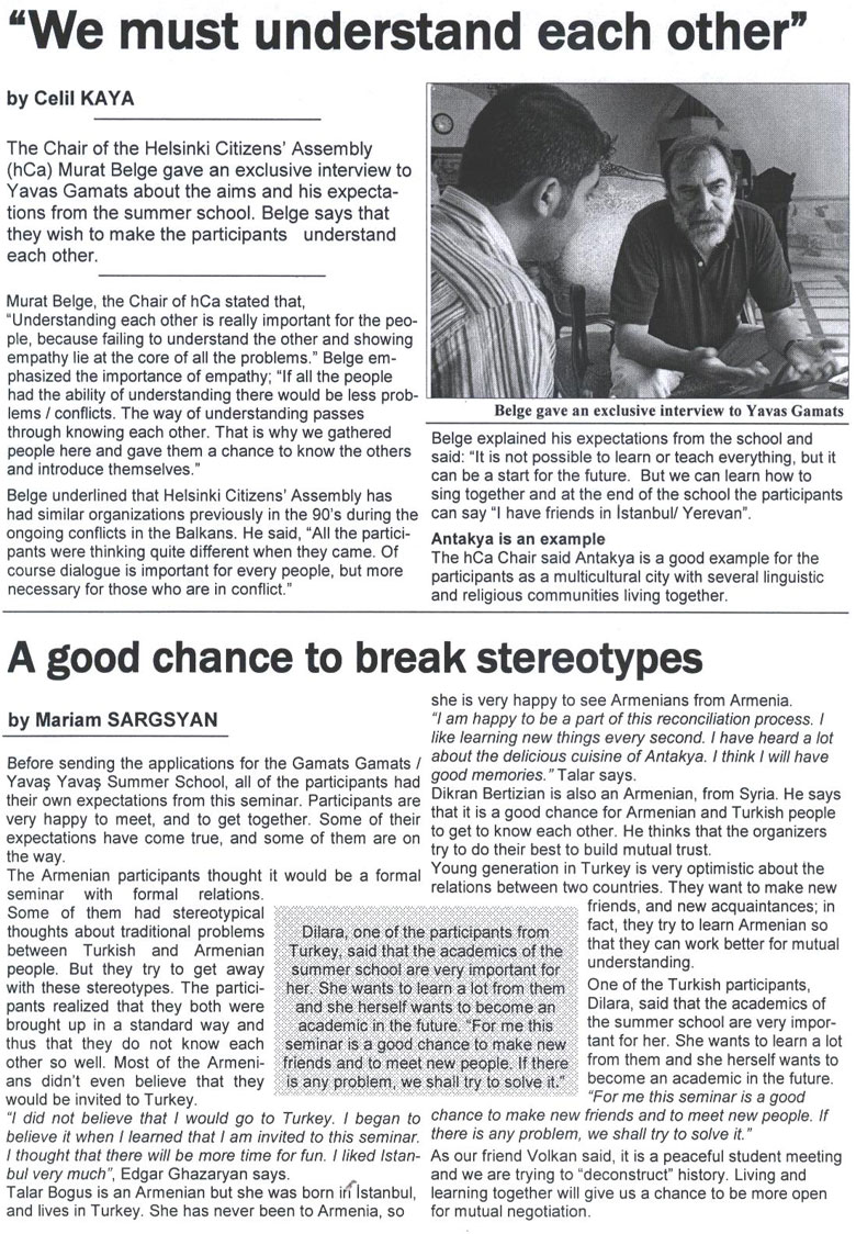 The Consortium partners include Civilitas Foundation (CF), Eurasia Partnership Foundation (EPF), Public Journalism Club (PJC), Regional Studies Center (RSC) from Armenia; and Anadolu Kültür, the Economic Policy Research Foundation of Turkey (TEPAV), Helsinki Citizens’ Assembly (hCa), and Hrant Dink Foundation from Turkey. The programme will include a series of activities such as media support, TV talk shows and citizen reporting to contribute to better mutual understanding.
